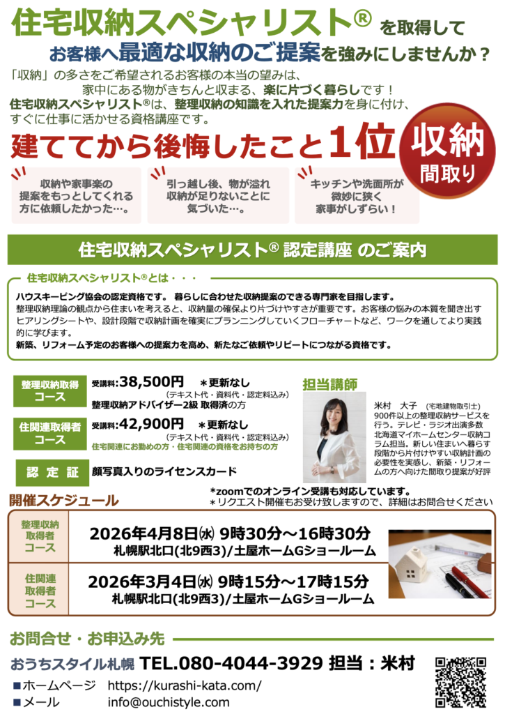 住宅収納スペシャリスト<1日取得コース>開催要項