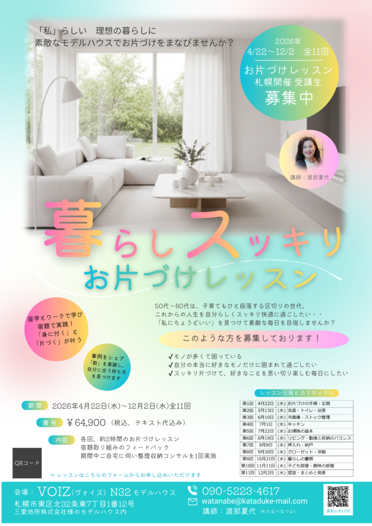 理想の暮らしの基盤づくり!全11回「暮らしスッキリお片づけレッスン」(渡部クラス1期)