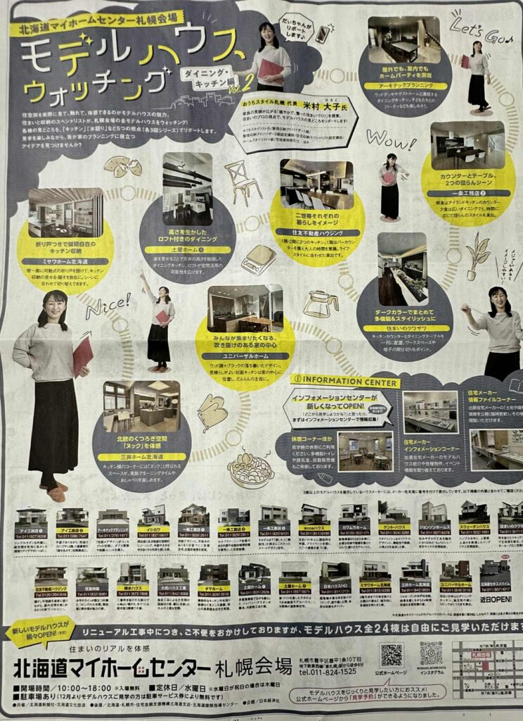北海道マイホームセンター様の折込広告内にて連載していた「モデルハウスウォッチング」が紙面掲載広告となりました。